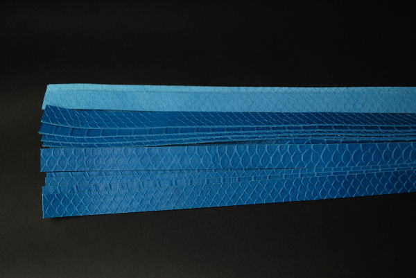 蛇の鱗を繊細な凹凸で表現した美しいシアンブルーの牛革です。