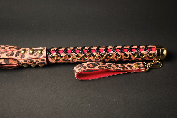裏側はピンクのヌバックレザーを使用したダブルレザーバラ鞭です。
